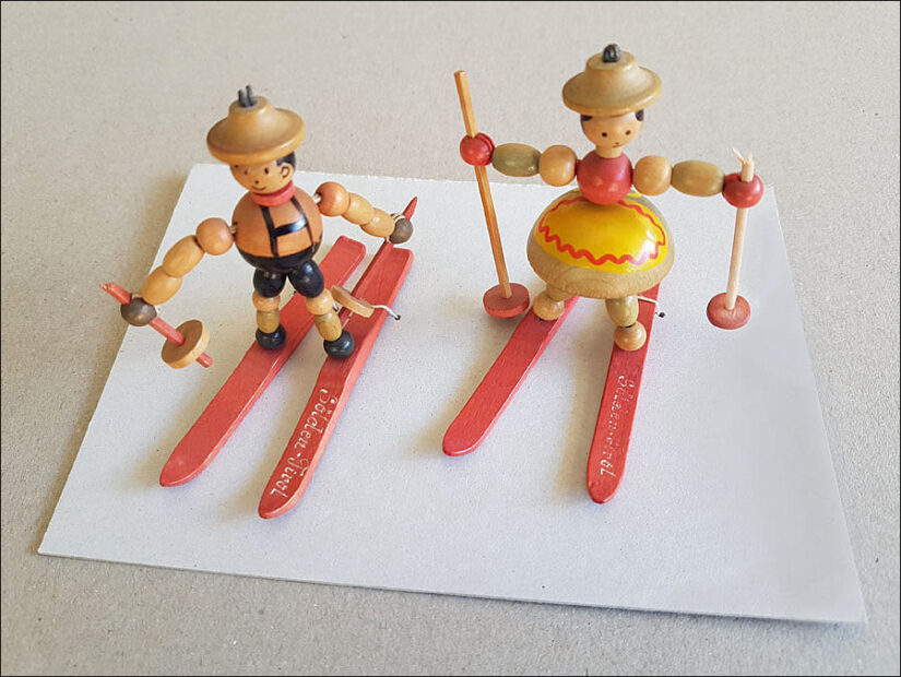 Es hat ohne Zweifel auch schönere Souvenirs gegeben als diese zwei Holzpuppen auf Skiern. Die…