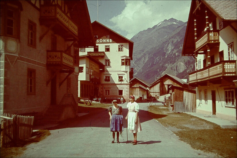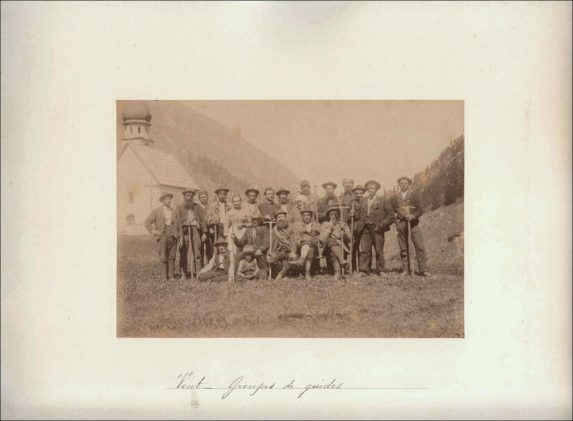 Diese Fotografie im Lose-Blatt-Album der französischen Touristengruppe, die bis ins hinterste Ötztal vorgedrungen ist, trägt den…