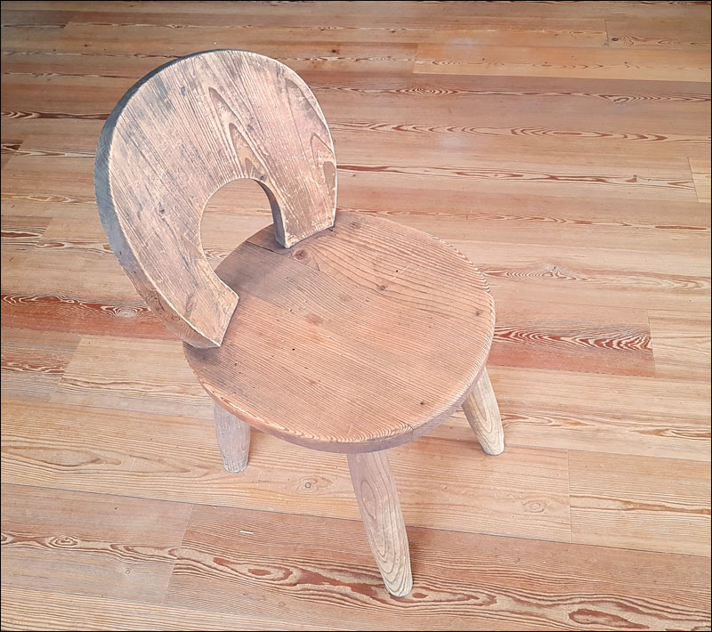 Franz Baumann, neben Lois Welzenbacher der prominenteste Vertreter der Tiroler Moderne in der Architektur hat in der Zwischenkriegszeit auch mehrere Aufträge in unserer Gemeinde ausgeführt, vom Umbau der Postamtsräumlichkeiten im Posthäusl 1931 über die Neugestaltung der Gaststube im Gasthof Post in Zwieselstein 1932 bis zur Planung des Hochfirst in Gurgl 1933. Dabei hat Baumann auch stets die Einrichtung und das Mobiliar selbst entworfen, von den Sitzmöbeln über die Tischlampen bis hin zu den Kleiderhaken. Und so wurden für Zwieselstein auch die ebenso wuchtigen wie eleganten Stühle damals streng nach seinen Vorgaben angefertigt. Damit wird dieses überlebende Exemplar auch schon bald 100 Jahre alt.
