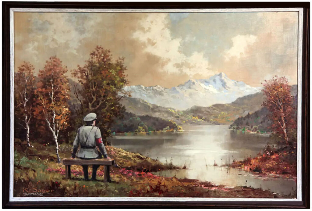 Er hat das biedere Bild als Vorlage genommen, verfremdet und die traute Bergidylle ins Sarkastische gekippt, indem er in den Vordergrund einen Mann in Nazi-Uniform mit Hakenkreuz-Armbinde gesetzt hat, der in die unschuldige Landschaft und auf den – ähem – Nederkogel blickt. Durch den Eingriff Banksys und seine Signatur in das Bild ist es zu einem seiner berühmtesten Kunstwerke geworden. Bei einer Versteigerung in New York hat es 615.000 Dollar eingebracht, die Banksy einem Aidshilfe-Projekt gestiftet hat.