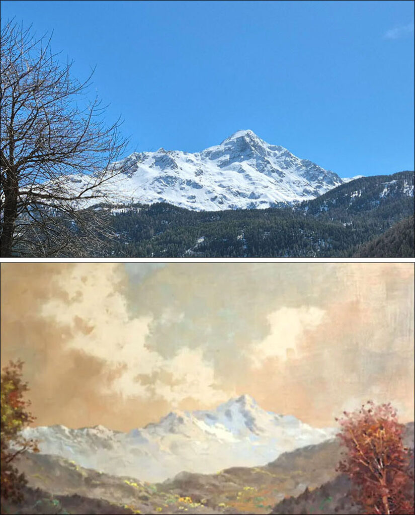 Um den Kitsch vollständig zu machen, hat er dann noch eine Bergsee dazu erfunden. Und Sölden damit zugepinselt.