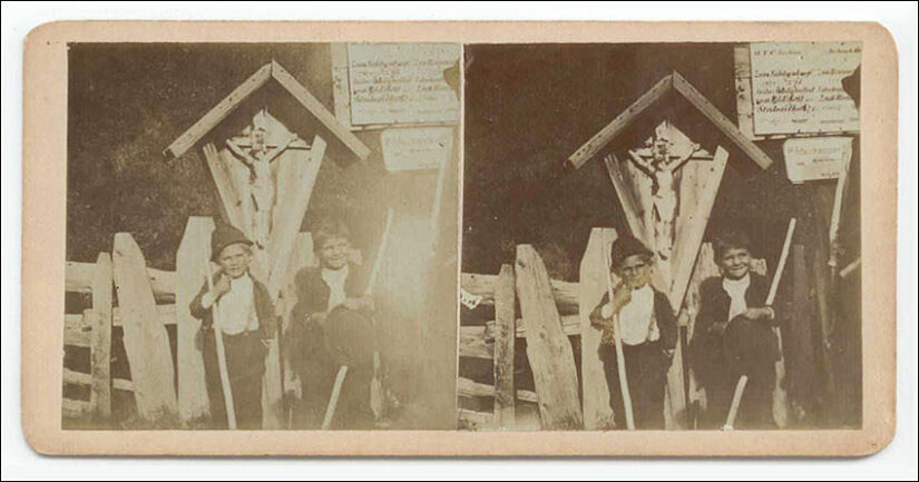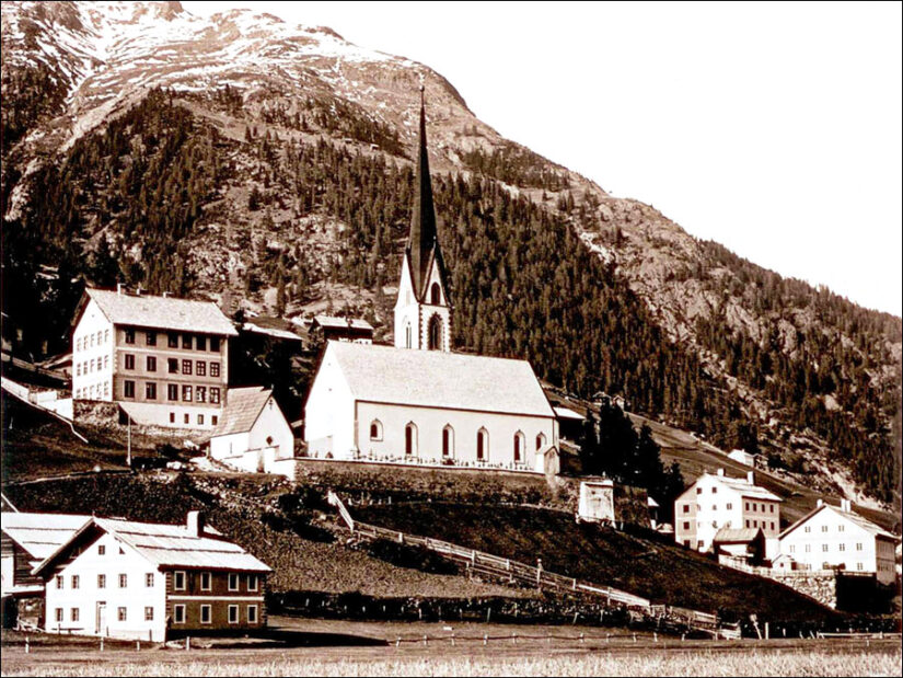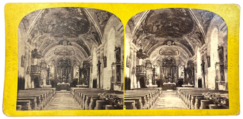 Die Pfarrkirche von Sölden in einer Stereoaufnahme aus den 1860er Jahren. Wie hat der Photograph William…