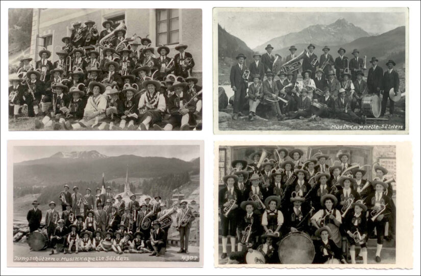 Diese Fotografie im Lose-Blatt-Album der französischen Touristengruppe, die bis ins hinterste Ötztal vorgedrungen ist, trägt den…