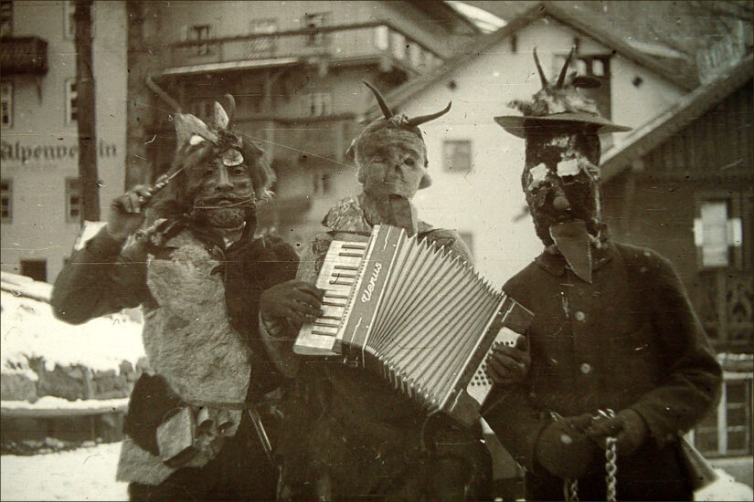 Nichts gekauft, alles selbstgebastelt: Larven aus Wollstoff, Gamskricklan am Kopf, Stoffzungen und echte Kuh- und…