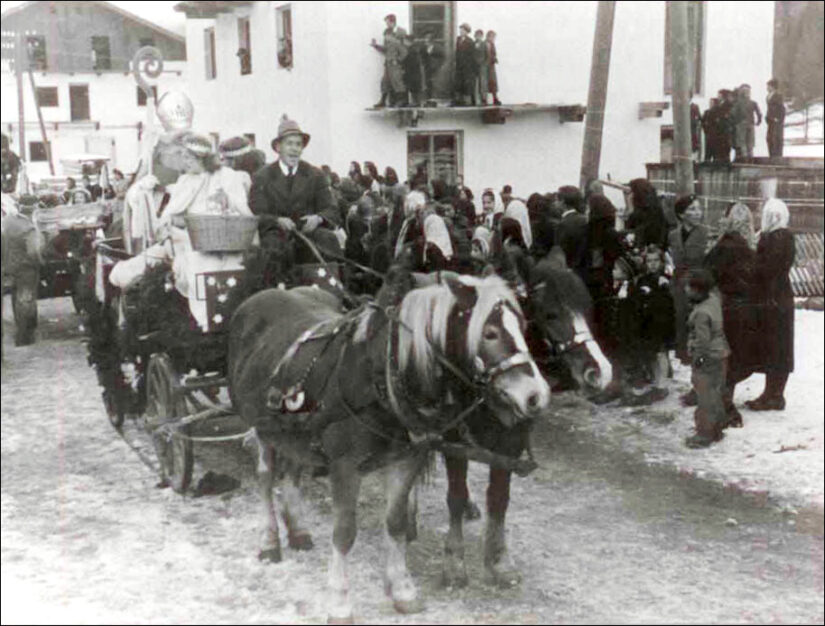 Das kleine Foto zeigt die seinerzeitige eher bescheidene Krippe im Sölder Widum, das große…