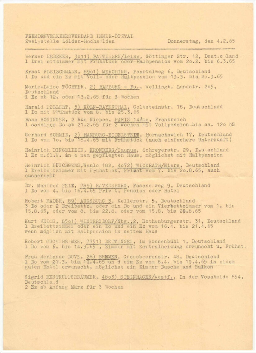 Hektographiert auf schlechtem Papier: So wurden die an den Fremdenverkehrsverband gerichteten Gästeanfragen im Verkehrsbüro für die Vermieter zum…