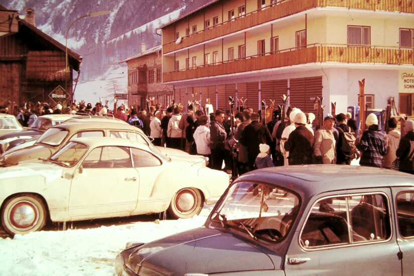 Den Autos und den Skiern nach stammt die Aufnahme aus der Zeit rund um 1960. Unglaublich, wie…