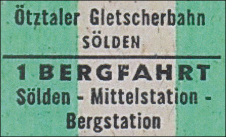 Eine sehr frühe Fahrkarte aus der Anfangszeit der Ötztaler Gletscherbahn, auf dünnem billigen Karton gedruckt, aufgespult auf…